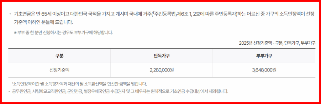 - 단, 소득·재산 수준이 높거나 부부 모두 수급 시 감액 가능